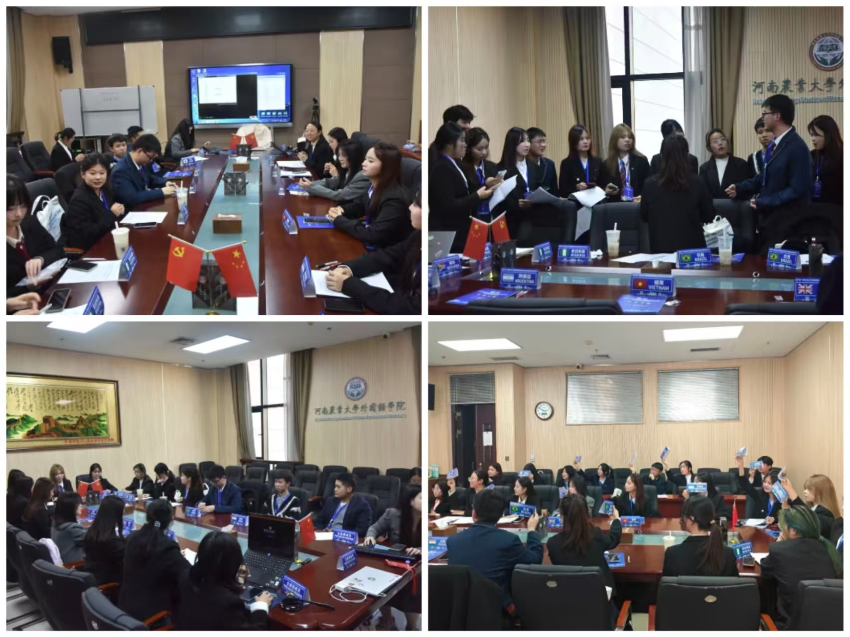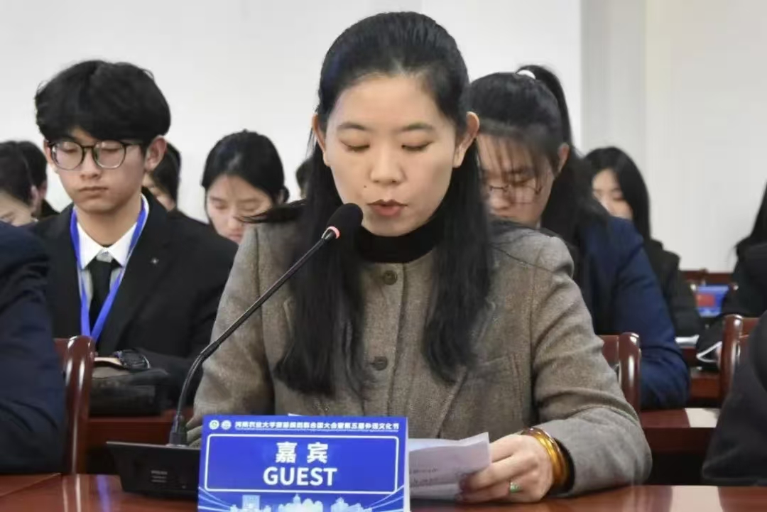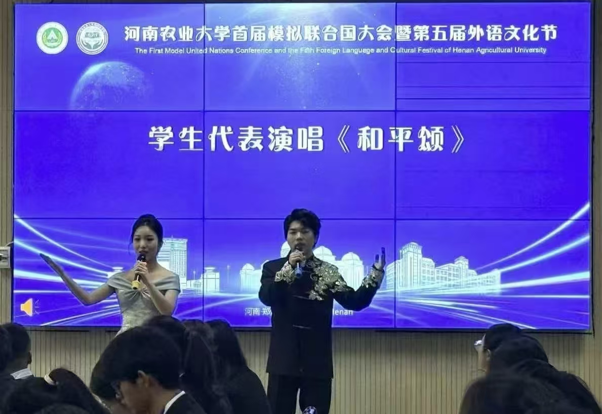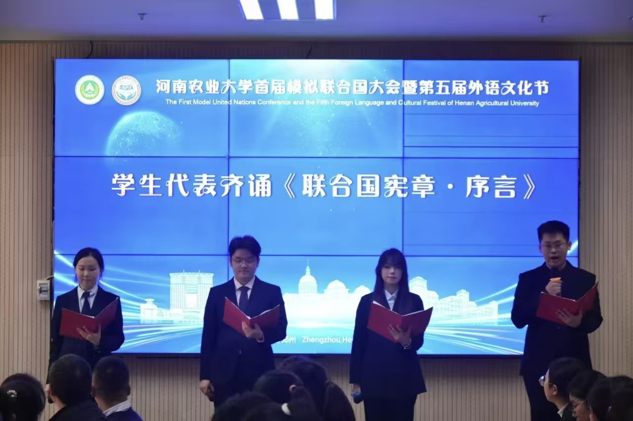 于繁塔楼A324隆重举行“河南农业大学首届模拟联合国大会暨第五届外语文化节”。校党委副书记、工会主席邹松涛、校党委学生工作部部长徐峰、校团委书记雷雯、研究生工作部部长郭治鹏、郑州大学外国语与国际关系永利皇宫app