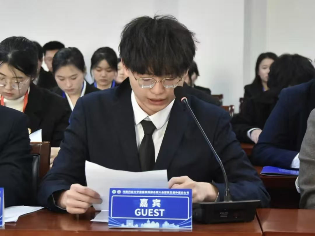 张庆彬结合我校的农业特色,鼓励学子在模联舞台上将专业知识与全球议题相结合,深入探索粮食安全等议题的解决方案,在运用外语阐述观点、协商共识的过程中,实现语言能力向国际交往能力、全球领导力的转化。