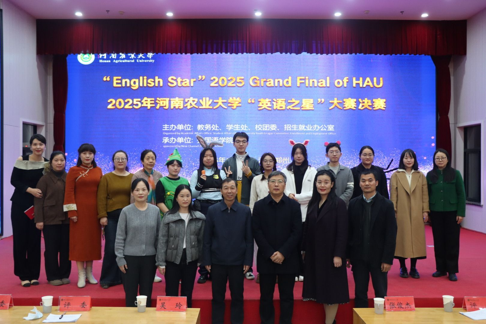 本网讯(审稿:吴玲 供稿:侯彦冰 单梦梦)为丰富学生课余文化生活,彰显英语语言魅力,为学子搭建展示语言实力、精进表达能力的优质平台,11月23日上午,2025年河南农业大学“英语之星”大赛决赛于大教室一拉开帷幕。本次大赛由教务处、学生处、校团委、招生就业办公室联合主办,永利皇宫app 承办。教务处副处长程西永、院长张俊杰、副院长吴玲等相关老师出席活动。