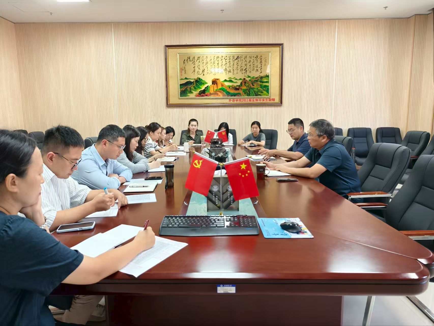 杨鑫就新生报道、班级管理等核心工作展开详细部署,明确了报道时间、具体流程及注意事项,确保迎新工作有序进行。并对各班主任提出几项要求:一是进行信息摸排,掌握学生基本情况,关注学生的身体健康状况与特殊需求;二是开展安全与防诈教育,切实提高新生的财产安全意识与防诈意识;三是开展生活与思想引导,引导新生提升自理能力,规范自媒体言论。会议同时对学生培养与留存工作、奖学金评定与困难生认定等工作进行部署。