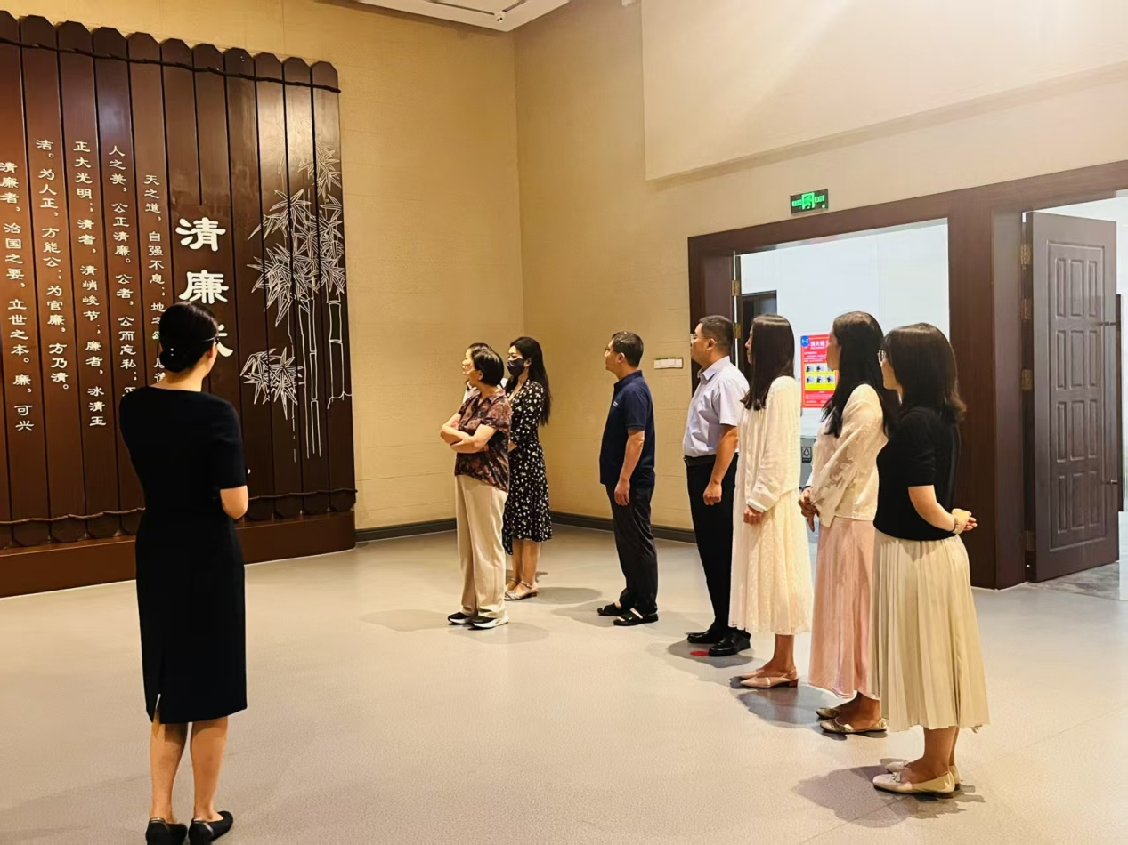 本网讯(审稿:杨鑫 供稿:张琴)在庆祝中国共产党成立104周年之际,为深入贯彻落实党的二十大精神,推动学习贯彻习近平新时代中国特色社会主义思想主题教育走深走实,加强党风廉政建设,增强党员干部廉洁自律意识,7月1日下午,永利皇宫app 研究生英语教学部教工党支部和翻译系教工党支部赴河南廉政文化教育中心开展廉洁教育主题党日活动。院党委副书记杨鑫、研究生英语教学部教工党支部书记魏少敏,翻译系教工党支部书记豆涛及支部党员参加活动。