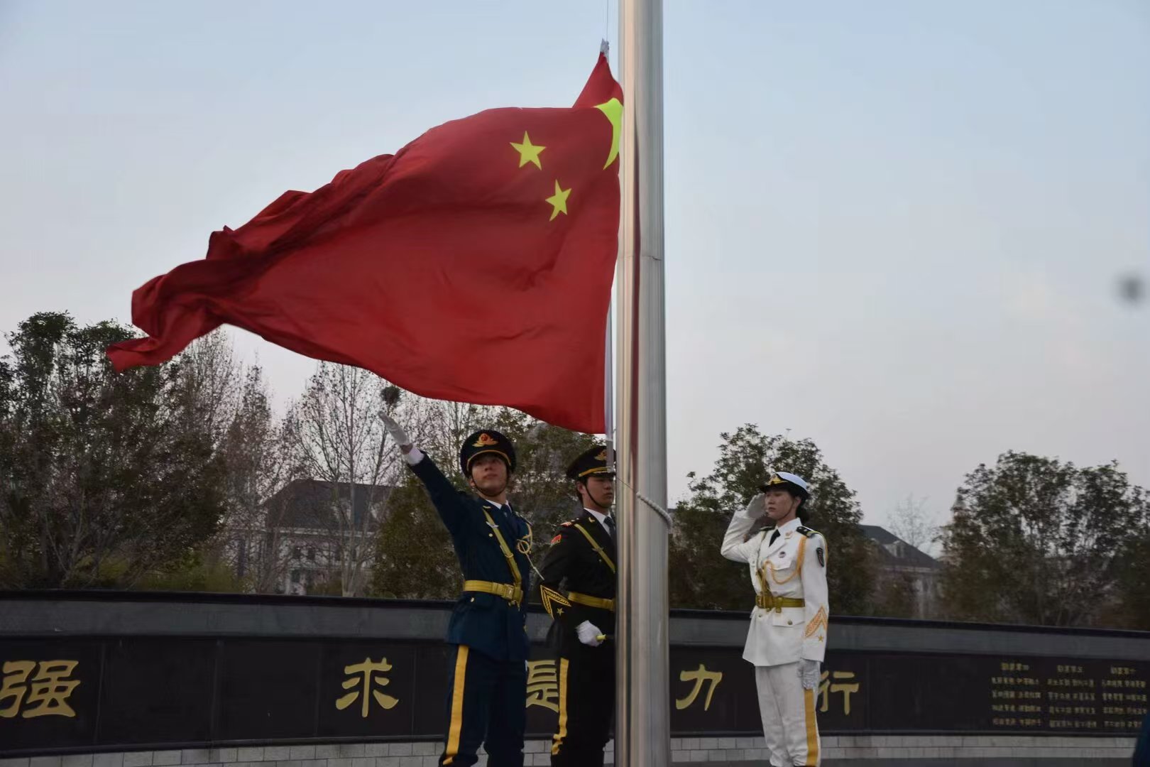 上午七时,升旗仪式正式开始。国旗护卫队步伐铿锵、姿态昂扬,护送国旗缓缓入场。伴随着庄严的国歌声,五星红旗冉冉升起,迎风飘扬。全体师生肃然而立,满怀深情向国旗行注目礼,表达对祖国的真挚祝福和对新年的美好憧憬。