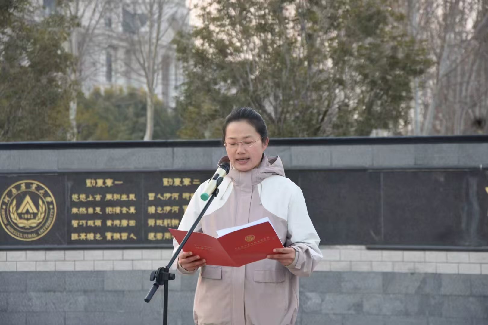 王燕萍发表国旗下的讲话。她围绕“扎根时代热土、融通世界语言、服务乡村振兴”三个关键词,对青年学子提出三点希望:一是心怀国之大者,在时代浪潮中找准青春坐标;二是锻造专业利剑,在跨文化传播中讲好三农故事;三是厚植三农情怀,在乡土中国书写人生华章。新时代外语人要以语言为犁,深耕国际视野;以文化为种,培育三农情怀。