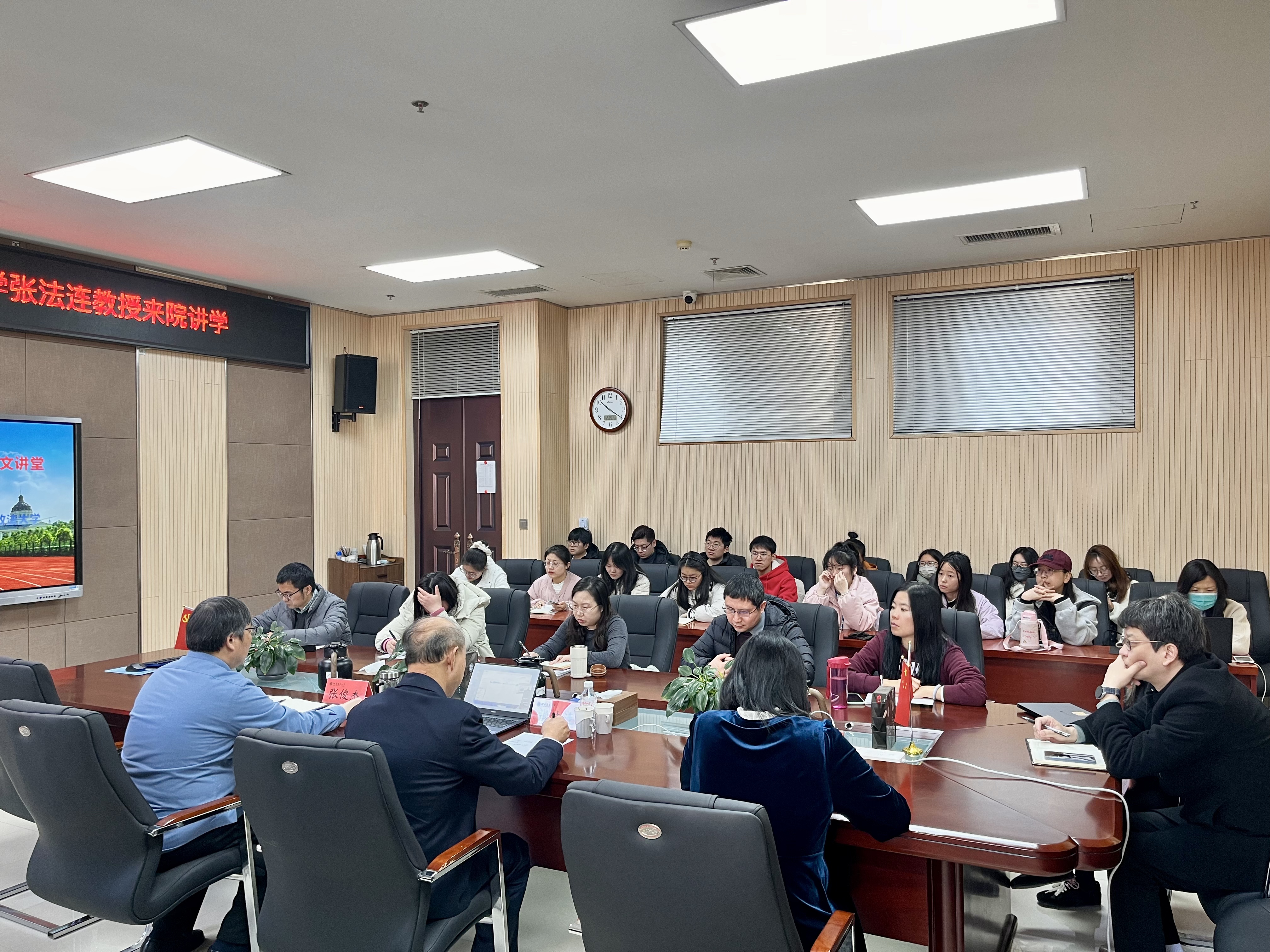 报告结束后,张法连与师生对国家社科基金选题及申请书撰写等进行了互动交流。通过此次报告,师生对国家社科基金项目和中华学术外译项目有了新认知,为后期国家级社科项目的申报打下了坚实基础。