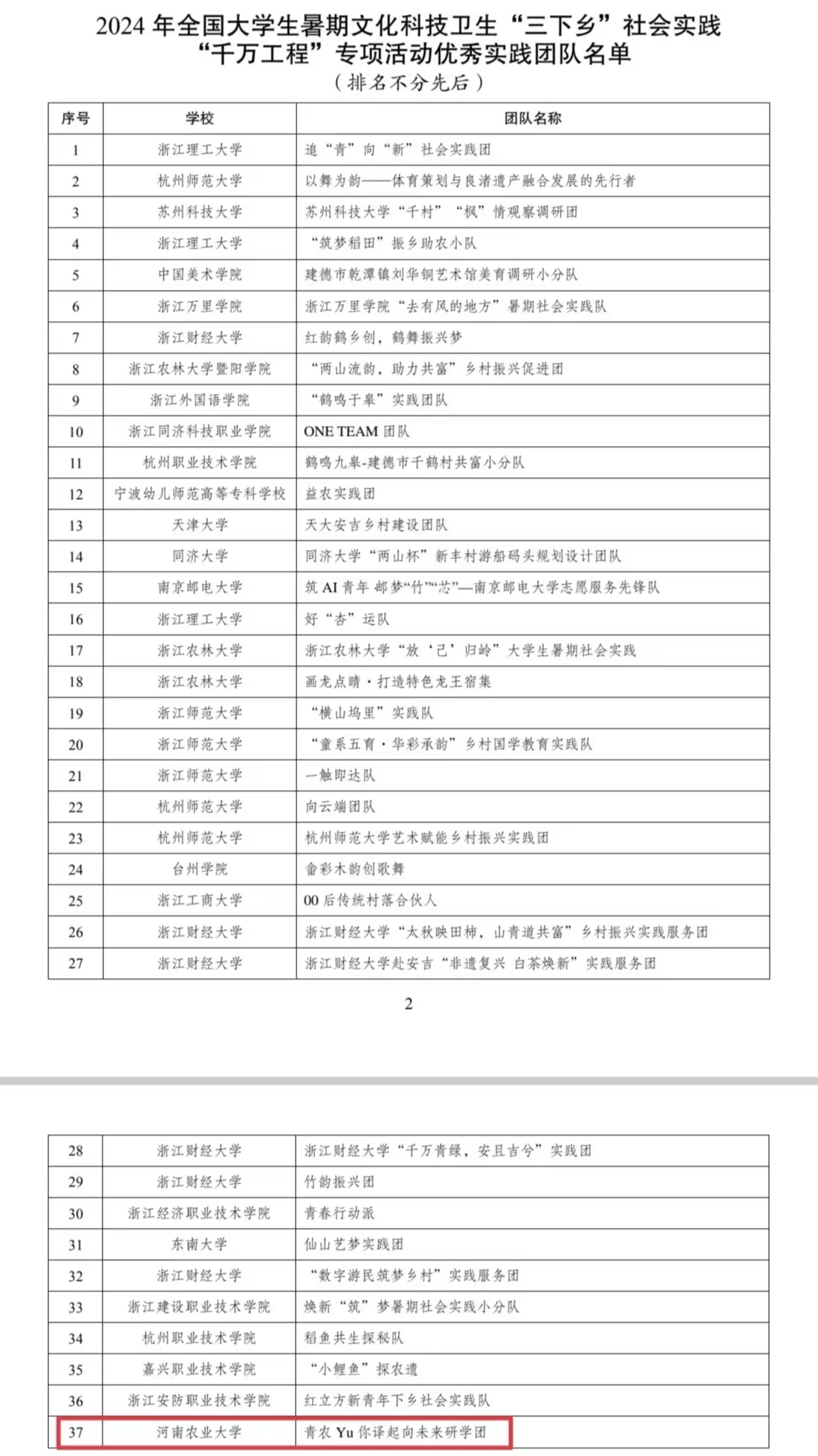 喜报|永利皇宫app 团队荣获2024 年全国大学生暑期文化科技卫生“三下乡”社会实践“千万工程”专项活动优秀实践团队