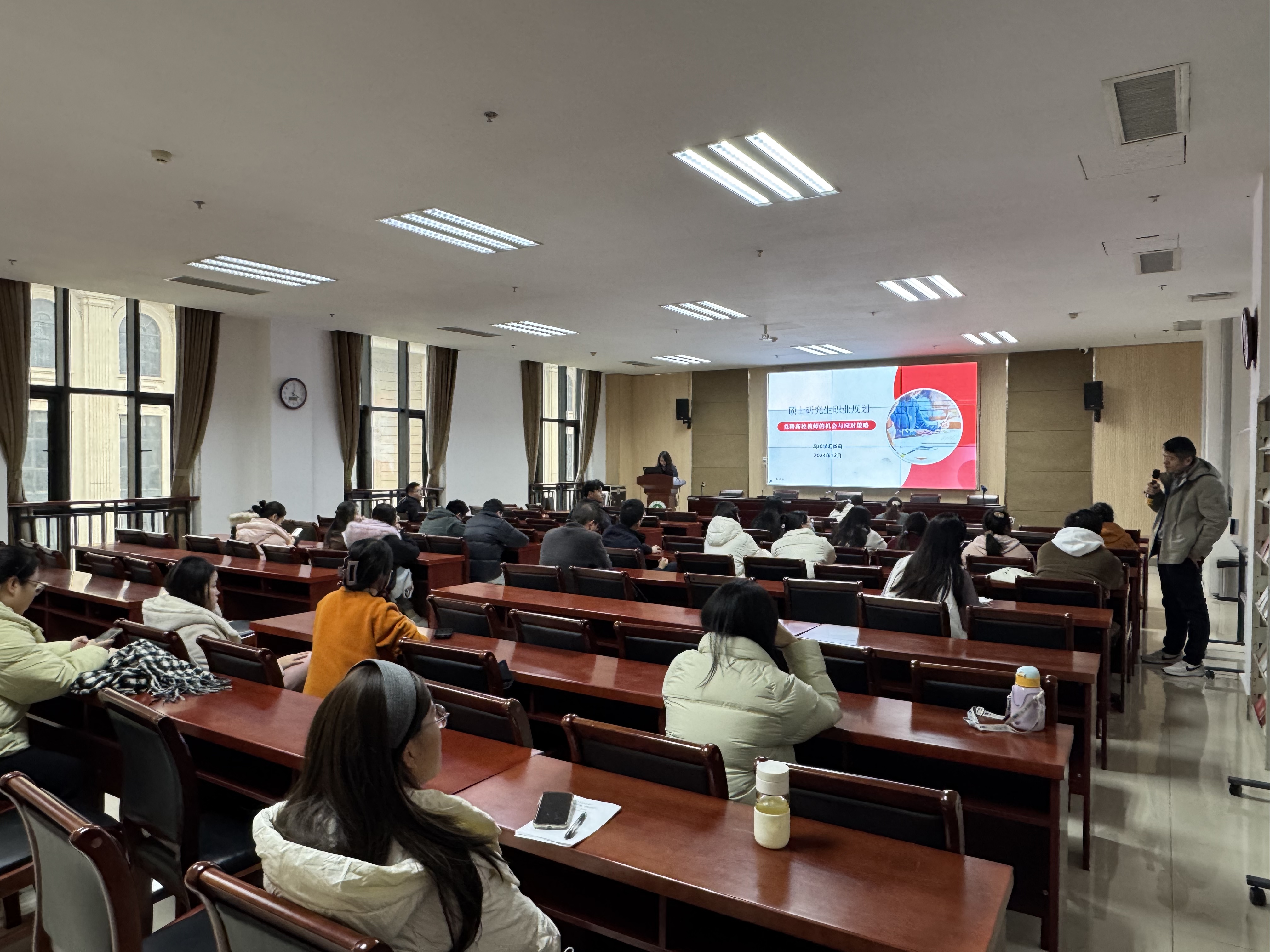 本网讯(审稿:杨鑫 供稿:薛杰)为进一步提升我校研究生职业规划能力和就业竞争力,助力研究生实现高质量就业,12月9日下午,由我校招生就业办公室主办,永利皇宫app 承办的硕士研究生职业规划——“竞聘高校教师的机会与应对策略”宣讲会在龙子湖校区教学楼A324教室成功举办。此次宣讲会邀请到河南省学汇教育科技公司负责人及宣讲人出席,学校近百名硕士研究生参加。
