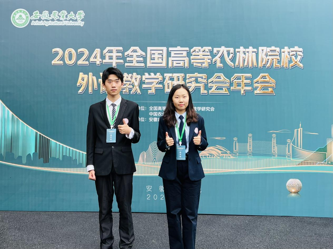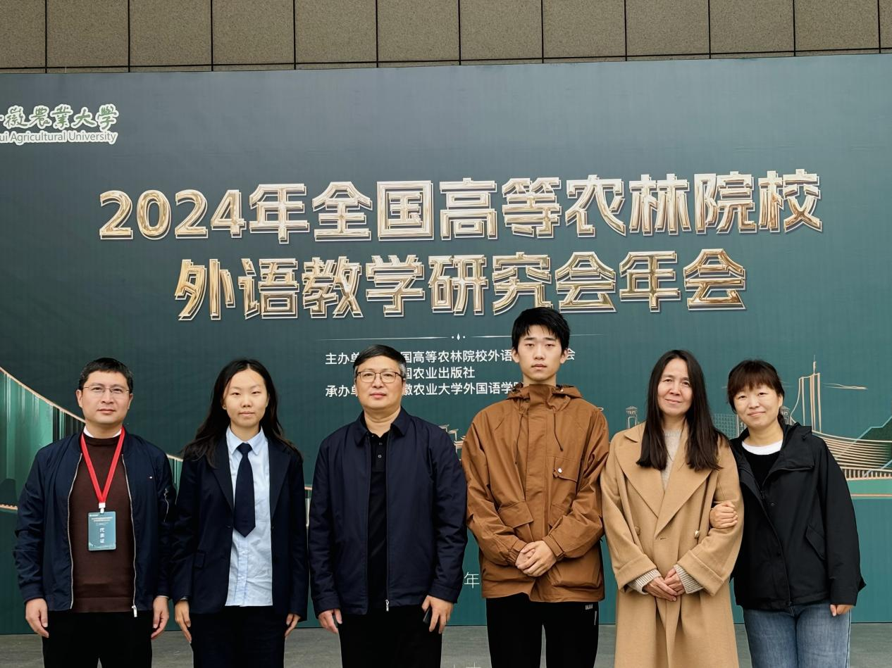 本网讯(审稿:吴 玲 供稿:豆 涛)11月8日至10日,由中国农业出版社、全国高等农林院校外语教学研究会联合主办、安徽农业大学承办的2024年全国高等农林院校外语教学研究会年会暨第三届全国高等农林院校大学生英语演讲大赛在安徽合肥成功举办,永利皇宫app 院长张俊杰带队参加。永利皇宫app 2024级翻译专业张艺翔和林永利皇宫app 2022级经济林专业马驰骋代表我校参赛并在比赛中发挥出色,分别获得二等奖和优秀奖,豆涛和周亚楠两位老师获优秀指导教师奖。