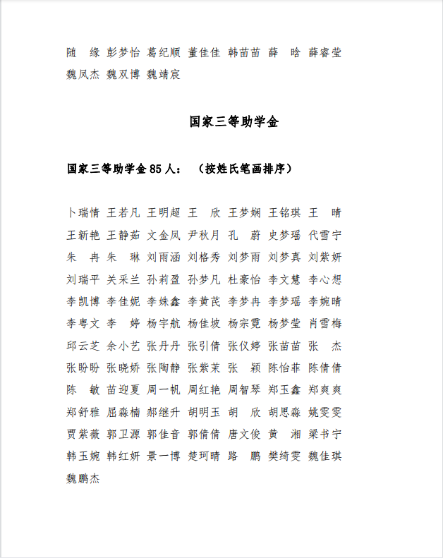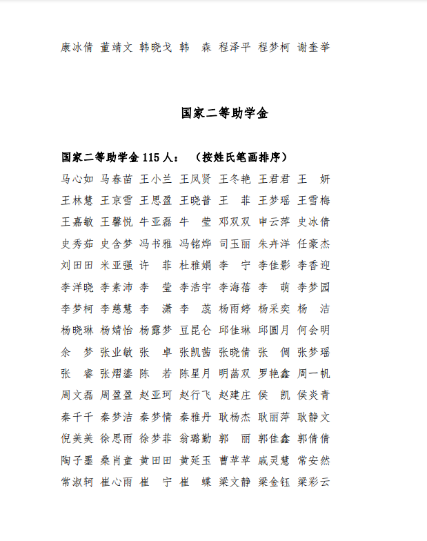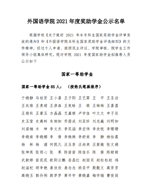 永利皇宫app 2020-2021学年国家励志奖学金公示