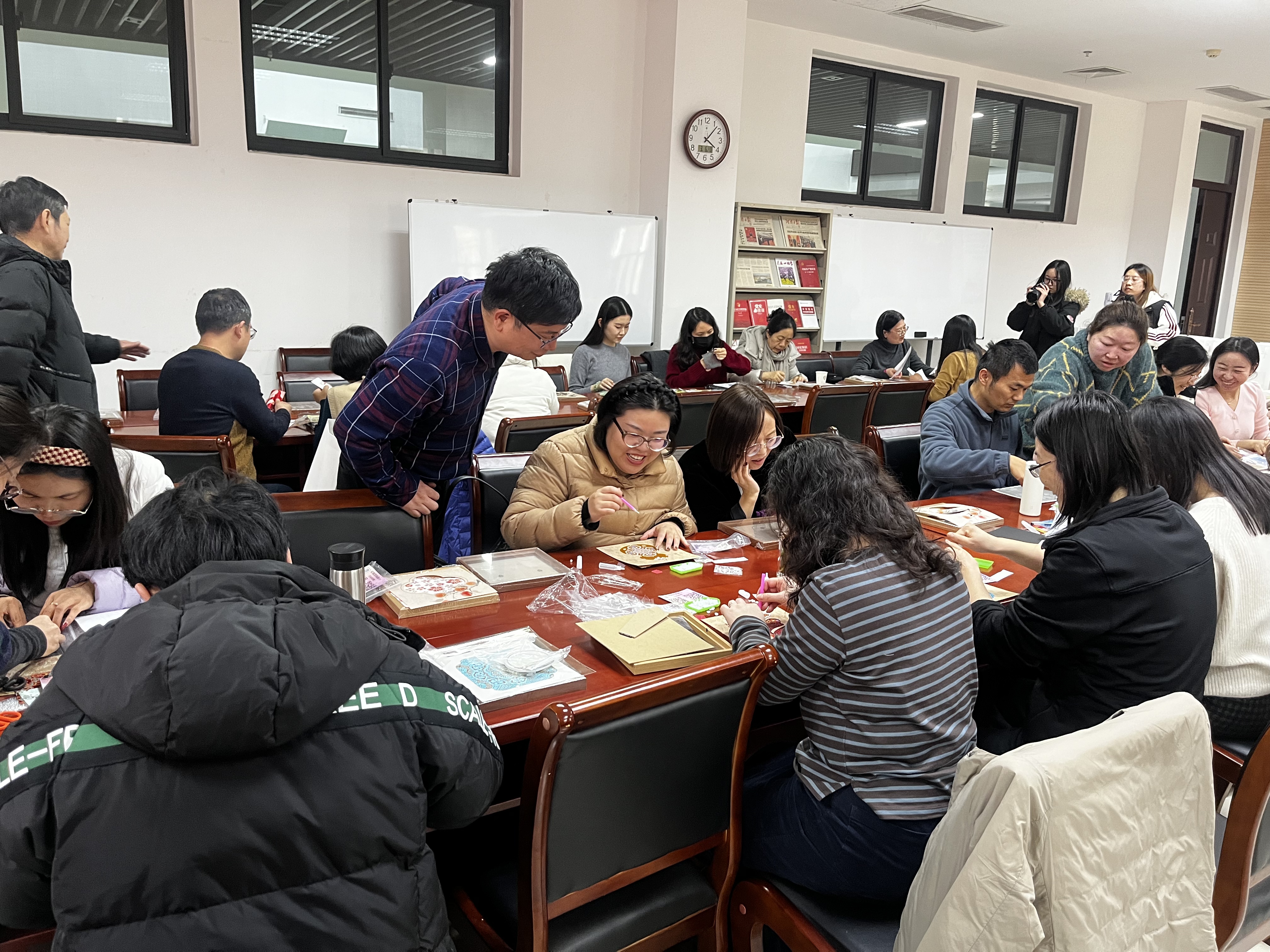 女教职工欢聚一堂,在指尖非遗中感受传统美学,共度温馨雅致的节日时光。