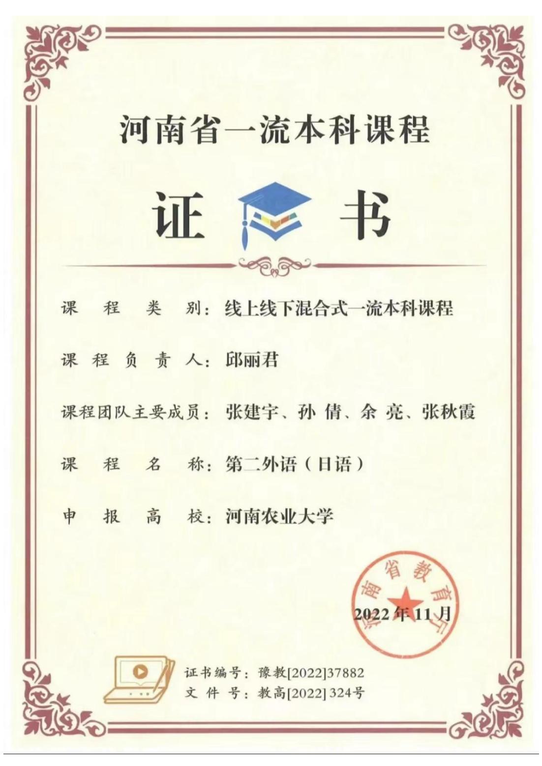 日语专业教师团队所授课程获评河南省一流本科课程