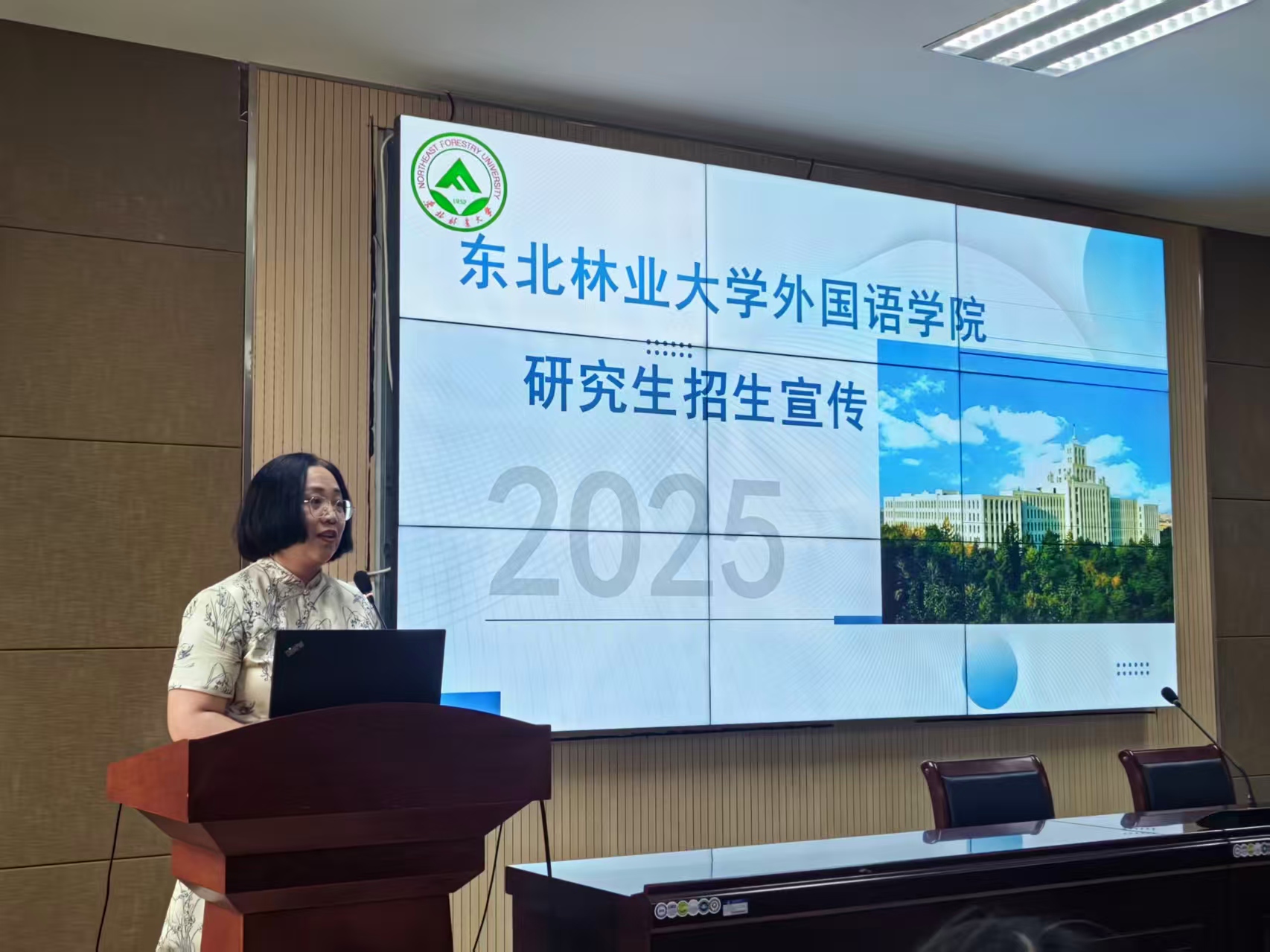 宣讲中,东北林业大学永利皇宫app 齐艳副教授详细介绍外国语言文学一级学科(含英语、日语、俄语语言文学及外国语言学及应用语言学方向 ),以及翻译硕士专业学位授予点(英语笔译、口译,俄语笔译等 ),聚焦英语与翻译相关方向,从学科特色到培养模式,全方位解析升学路径,为同学们答疑解惑,指引专业成长方向。