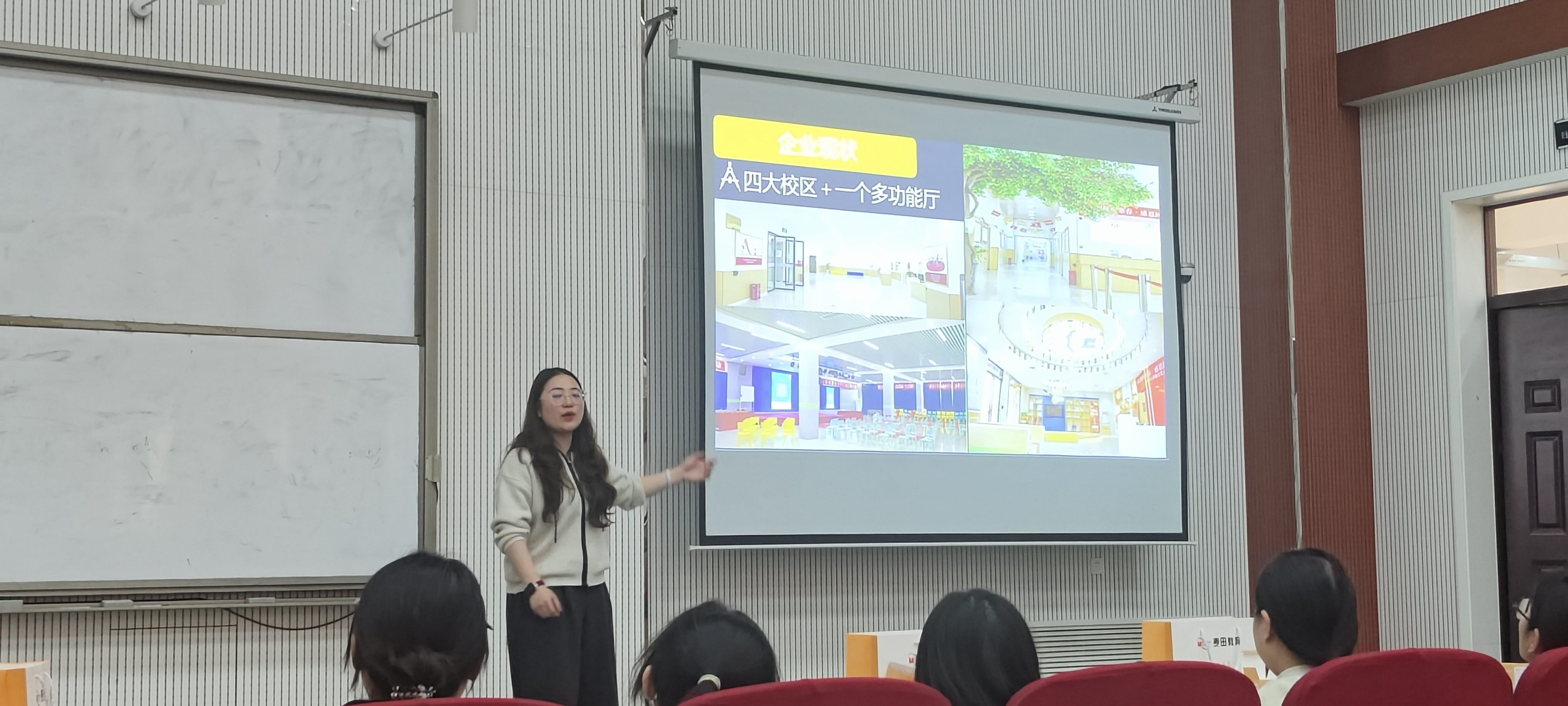 于龙子湖校区大教室6CD3承办麦田教育秋招线下宣讲会,麦田教育校招负责人崔白露及企业部门代表出席,学校22级毕业生代表参加此次宣讲会。