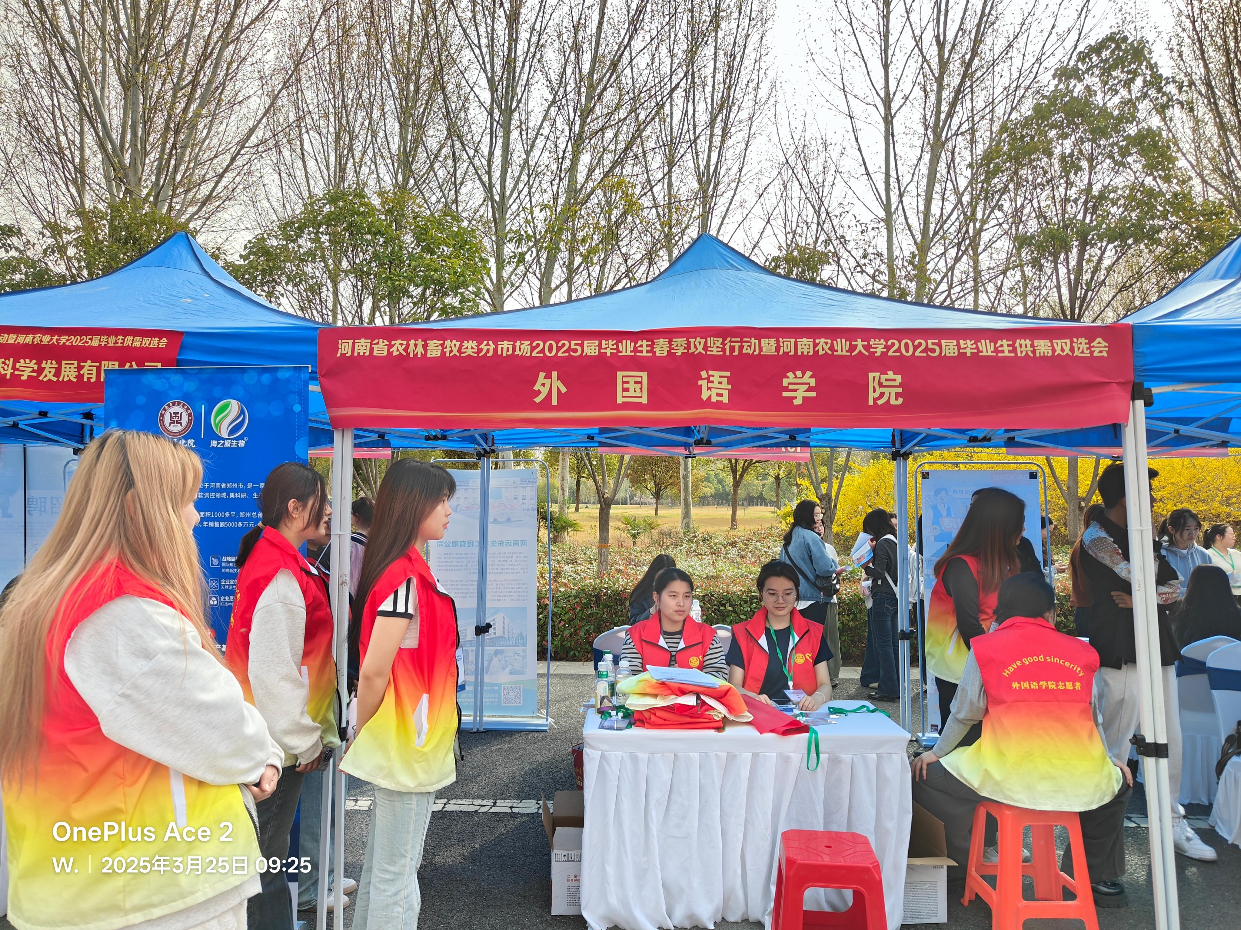 本网讯(审稿:杨鑫 供稿:武宗励 王馨雨)2025年3月25日,河南农业大学2025届毕业生供需双选会在龙子湖校区弘农大道隆重举行。永利皇宫app 积极组织用人单位报名参会,共邀请22家单位到场,此次双选会为历年来规模最大的一次,永利皇宫app 党委书记王燕萍和党委副书记杨鑫等多位院领导亲临现场,与用人单位深入沟通交流,同时,2025届毕业生也踊跃参与其中。