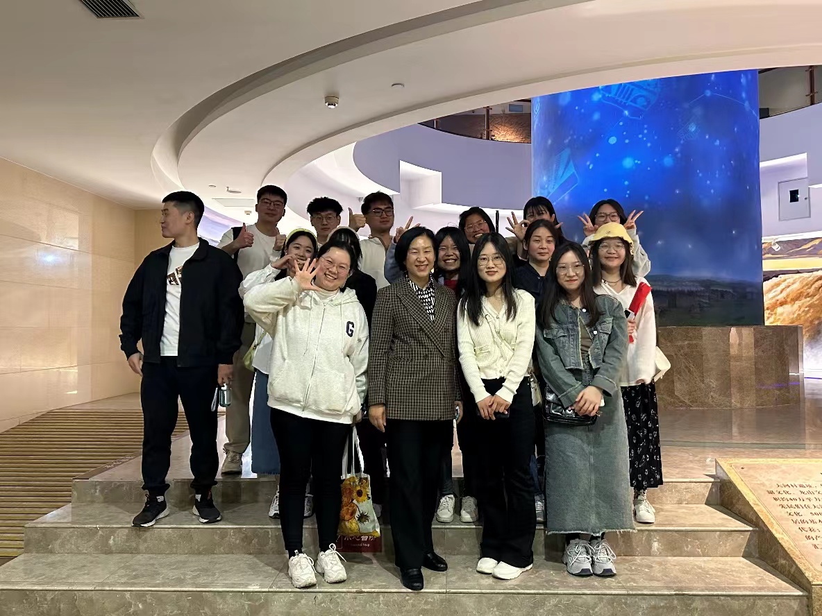 随着工作人员的解说,一幅幅生动的画面跃然眼前,仿佛让我们跨越5000年,来到故事发生的地方,体验中华祖先的日常生活。参观过程中,张莉教授还带大家仔细阅读各类英文翻译,现场讲解翻译理论与实践,号召大家用世界语言讲好中国故事。