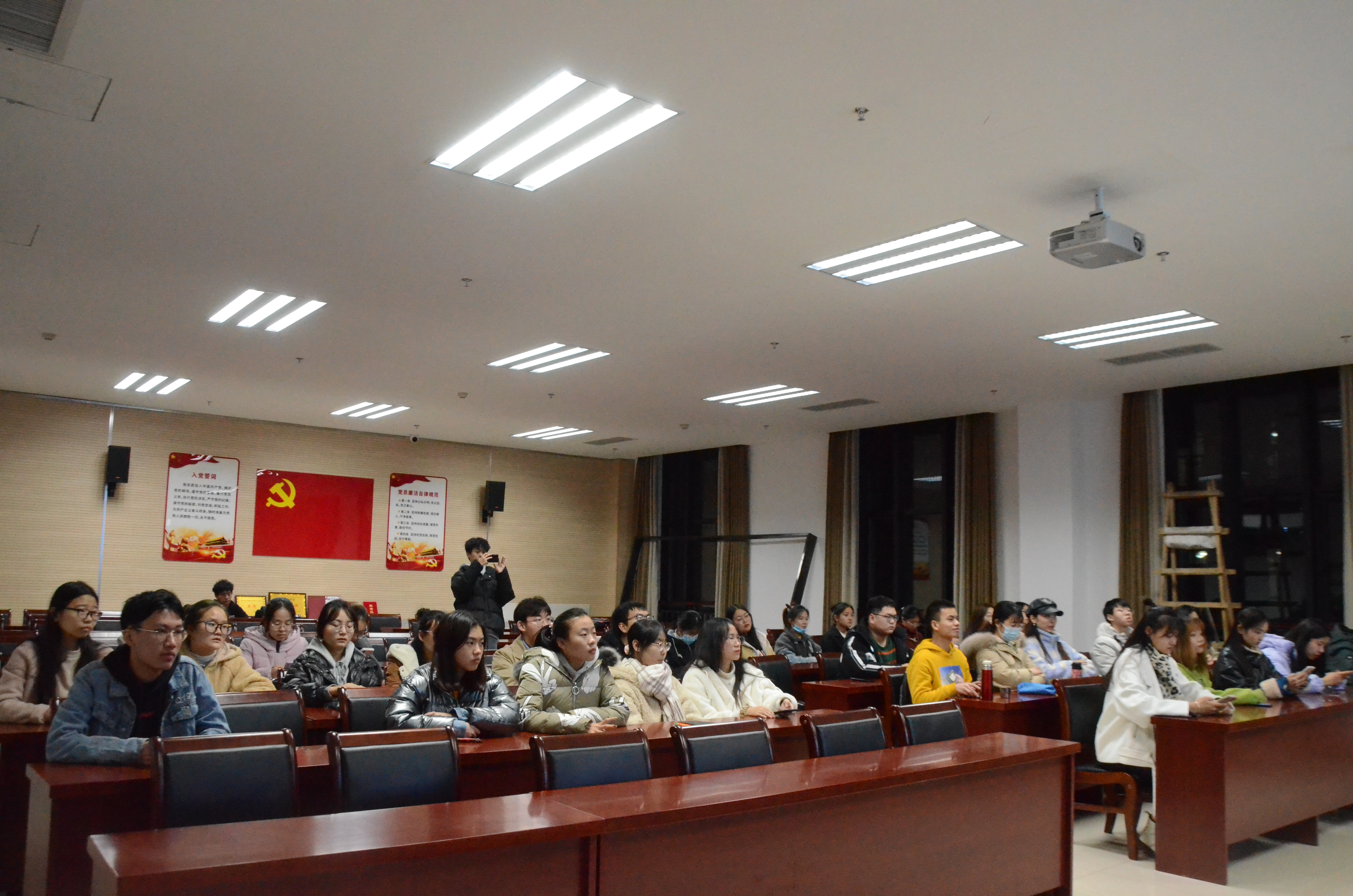 组织团员团干部及主要学生干部于龙子湖校区繁塔楼A324会议室收看了“青春新征程 奋进十四五”主题云团课直播。