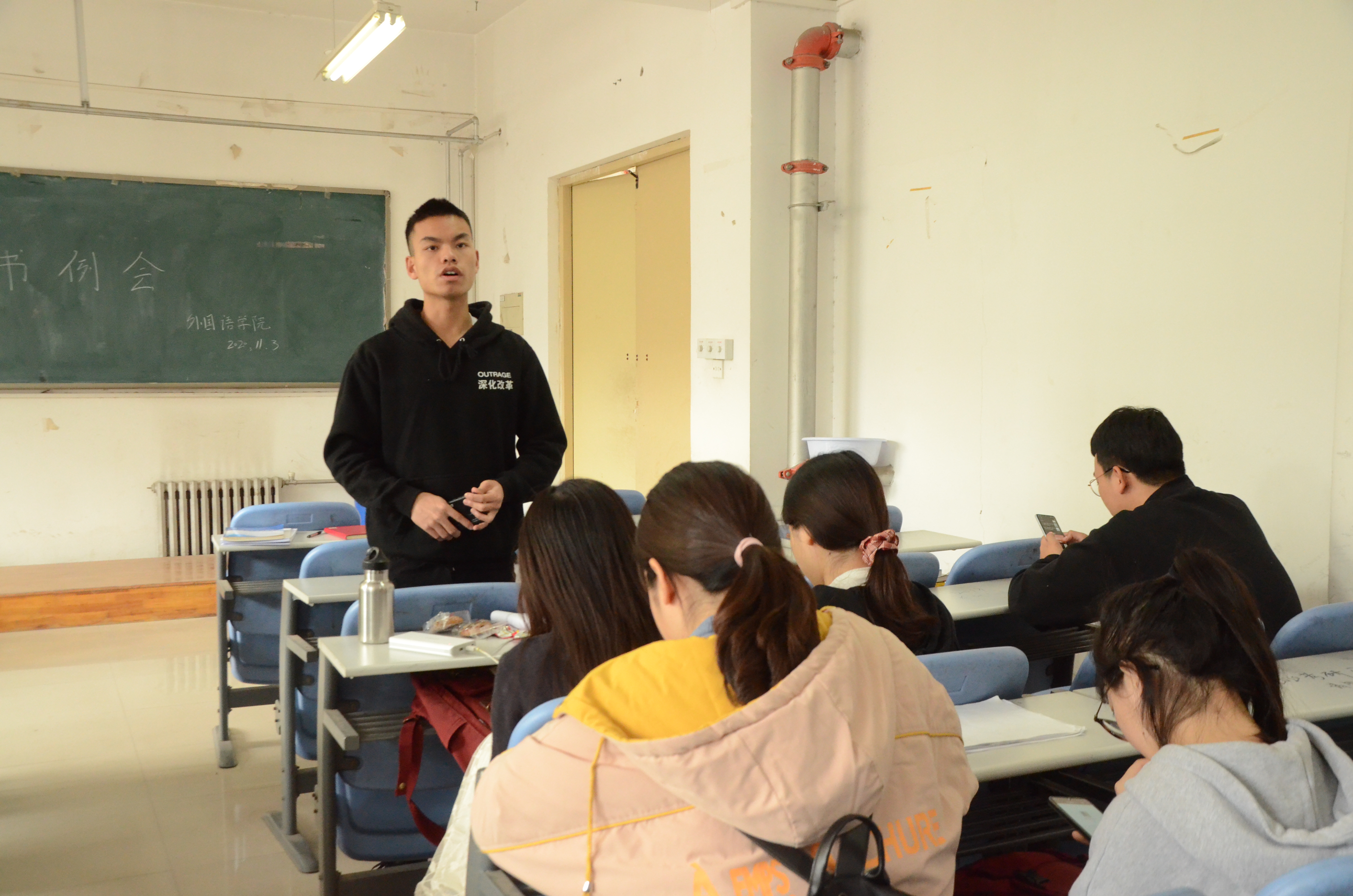 青年大学习学习率在校内名列前茅的好消息,并鼓励各团支部要继续保持积极的态度坚持理论学习,进一步提高自身的思想觉悟和政治素养。学生会学实部负责人安排了“外研社-国才杯”演讲比赛线下校级选拔赛的的具体工作,并呼吁大家积极参与河南农业大学2021年“星火杯”大学生课外竞赛。