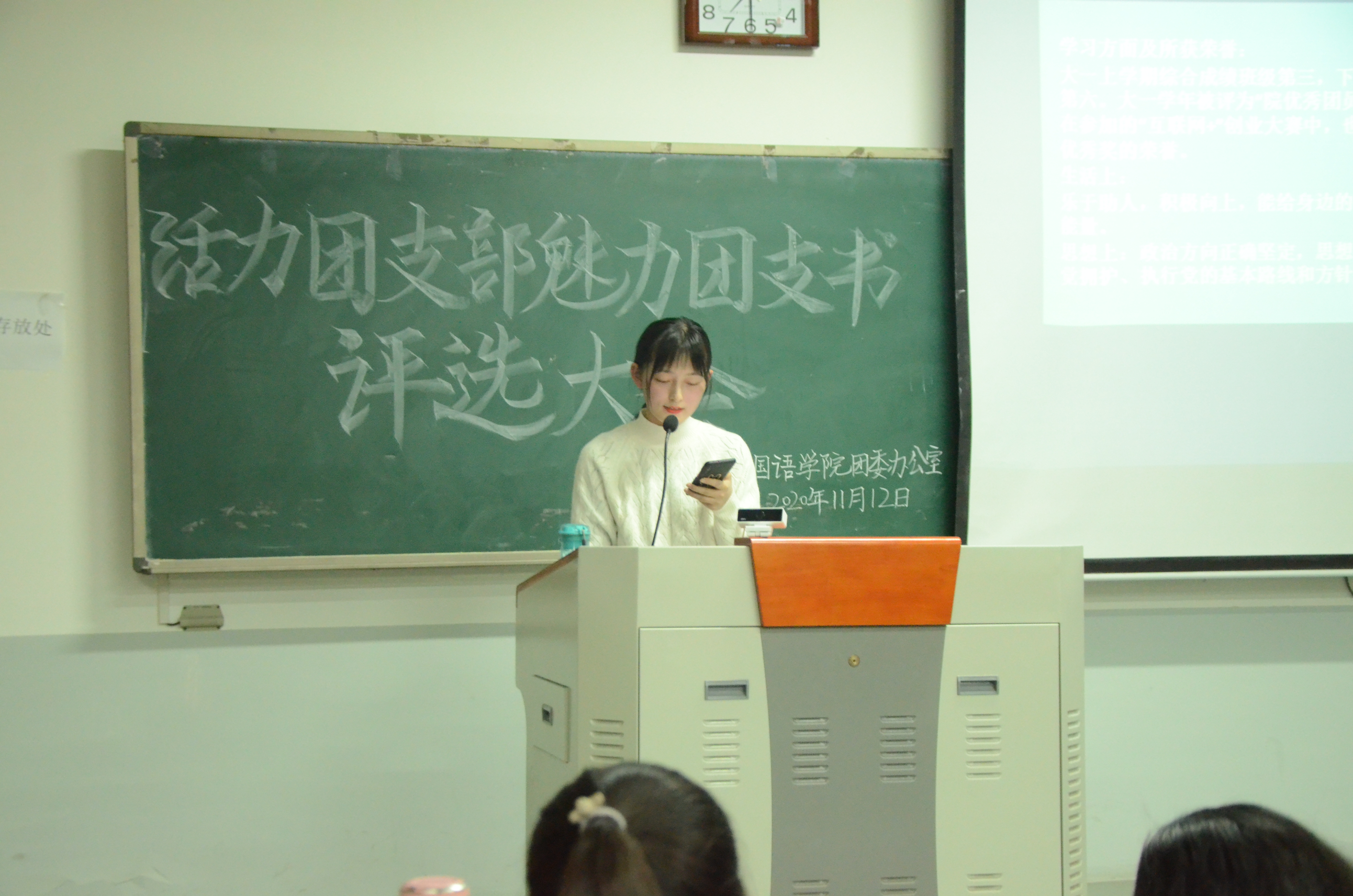 于11月12日晚7点在龙子湖校区繁塔楼C306教室举办了“魅力团支书,活力团支部”评选活动。团委辅导员闫雪茹及主要学生干部、各团支部学生代表出席活动并担任评委。