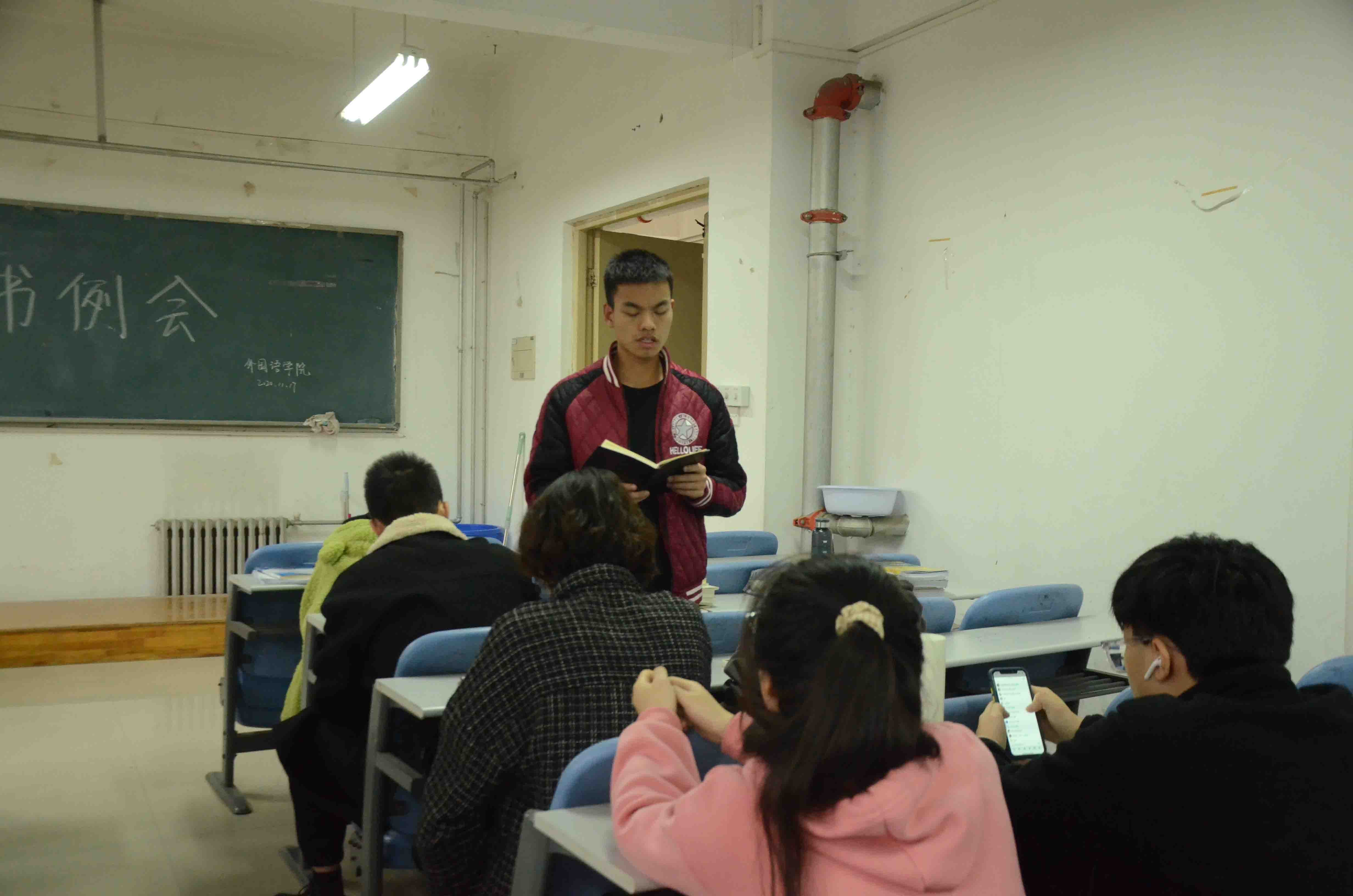 于龙子湖校区海棠园202自习室举办本学期第八次班长支书例会。主要学生干部和各班班长支书参加了此次例会。