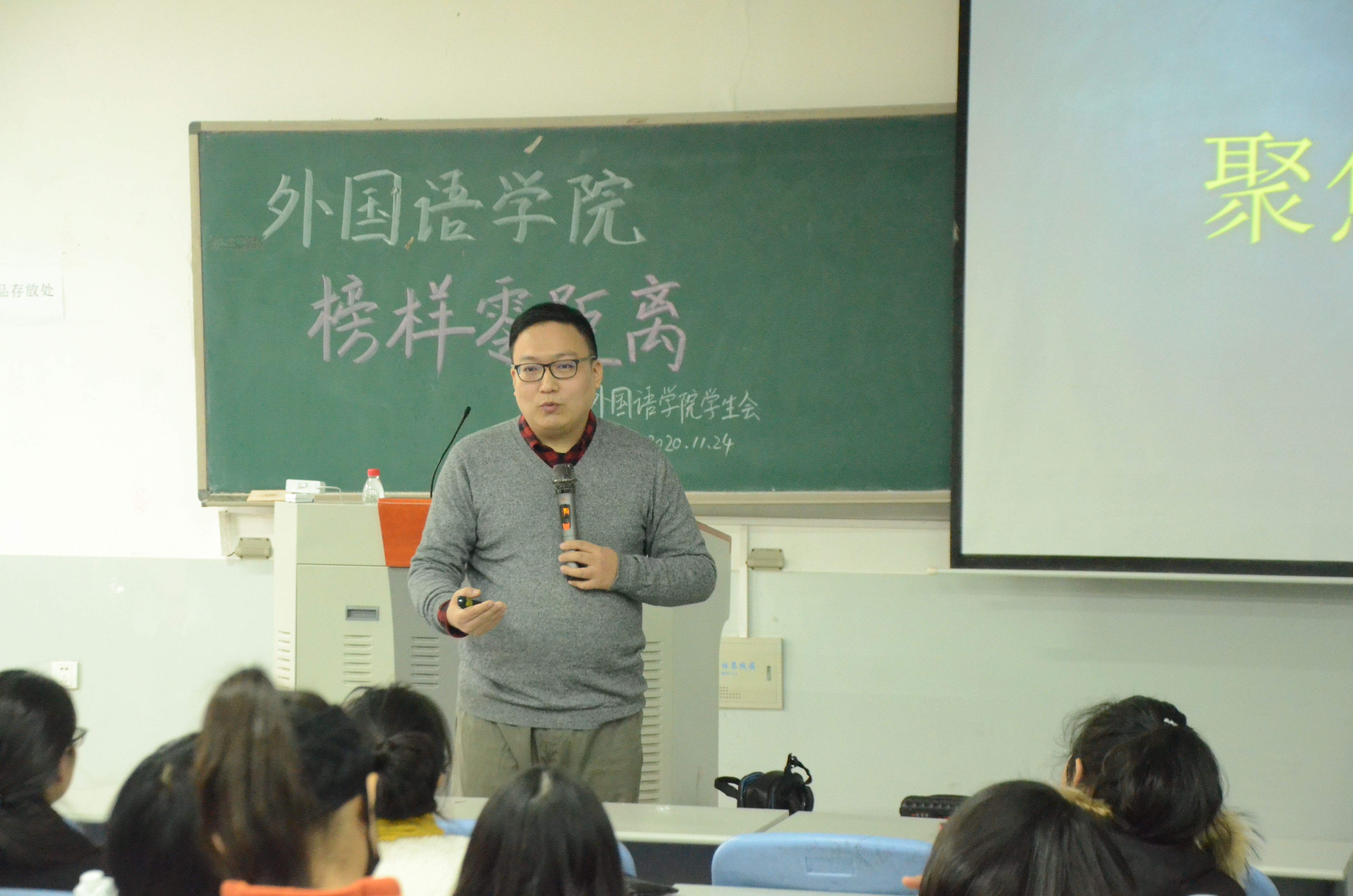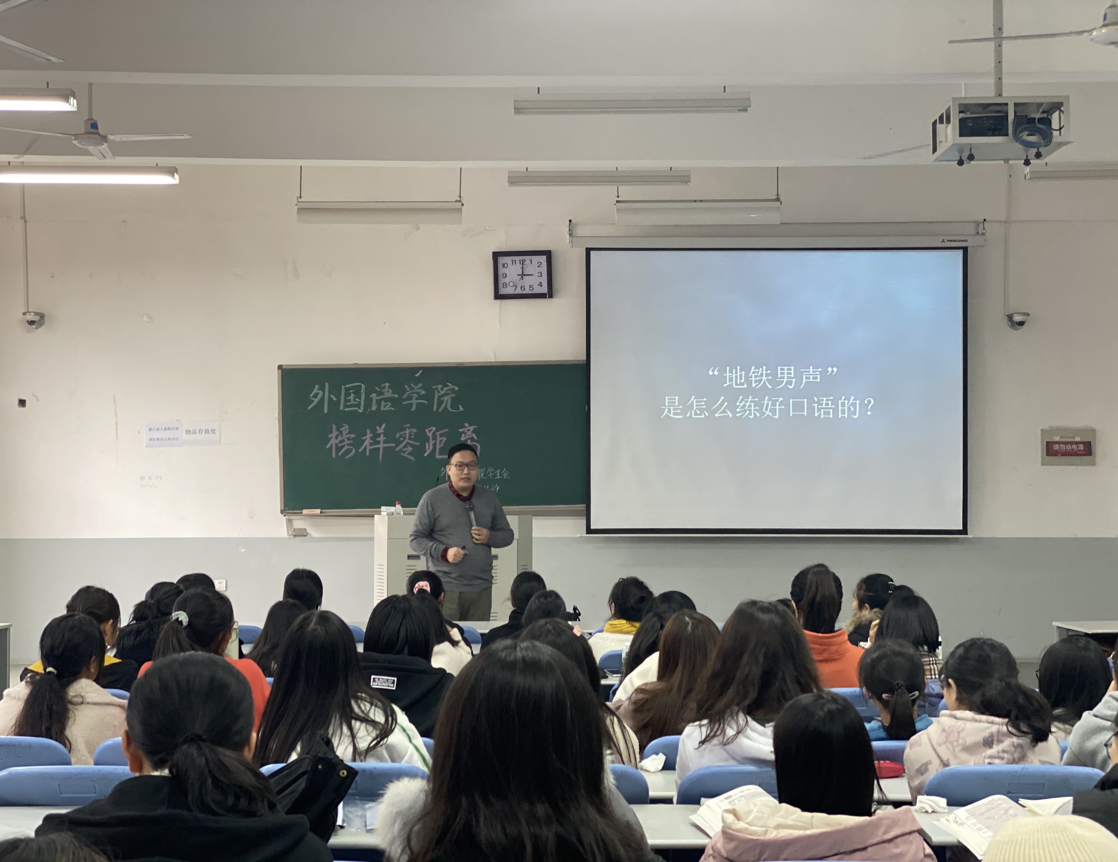 在龙子湖校区繁塔楼C206教室举办了第20期“榜样”零距离讲堂。地铁英语播报员、02级校友杨磊受邀担任此次讲堂的主讲人,20级全体班委及学生代表认真聆听了此次讲堂。