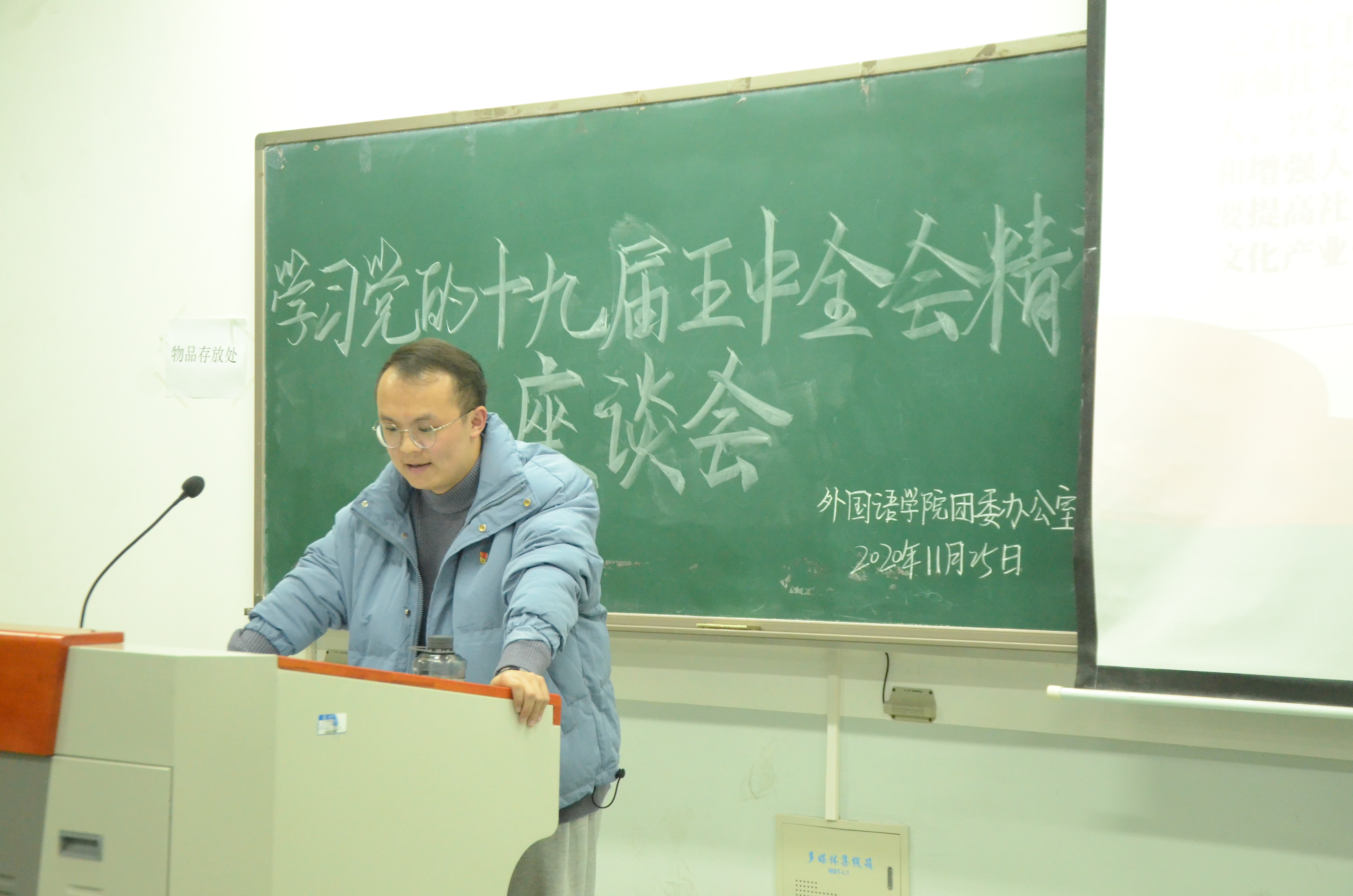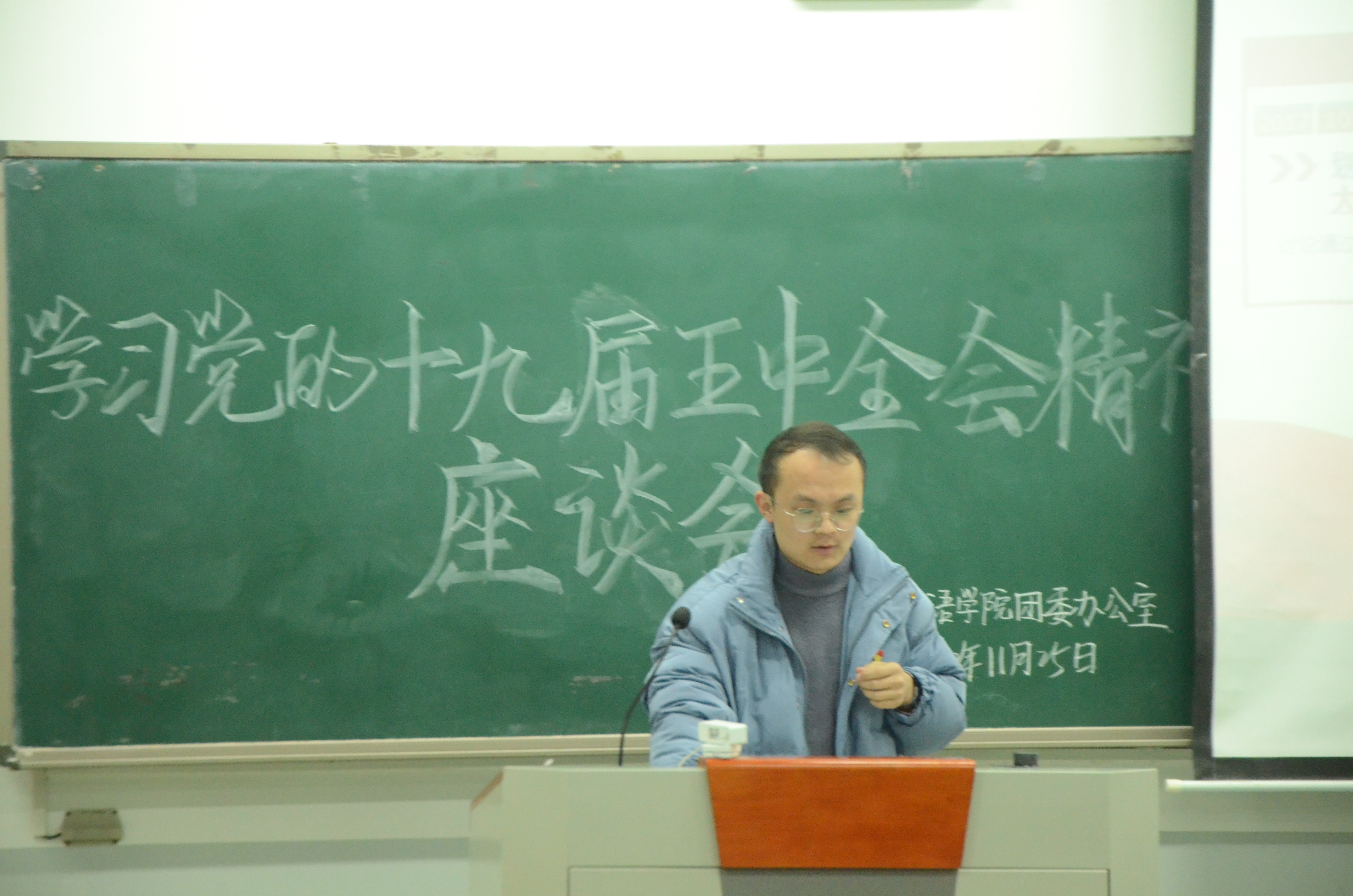 于龙子湖校区繁塔楼C306举办了学习党的十九届五中全会精神讲座。优秀学生党员武文浩担任主讲人,各团支部支部书记、副书记及委员参加讲座。