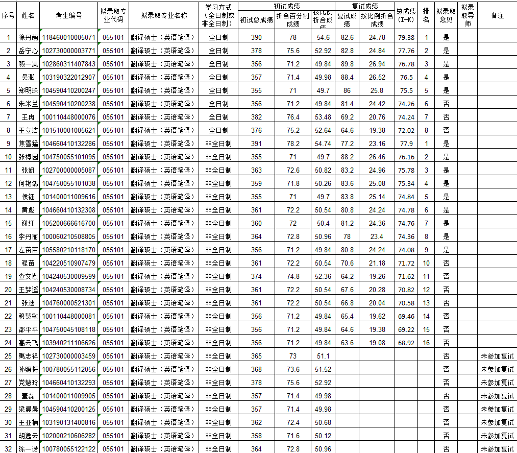 永利皇宫app 2020年翻译硕士复试名单(调剂)