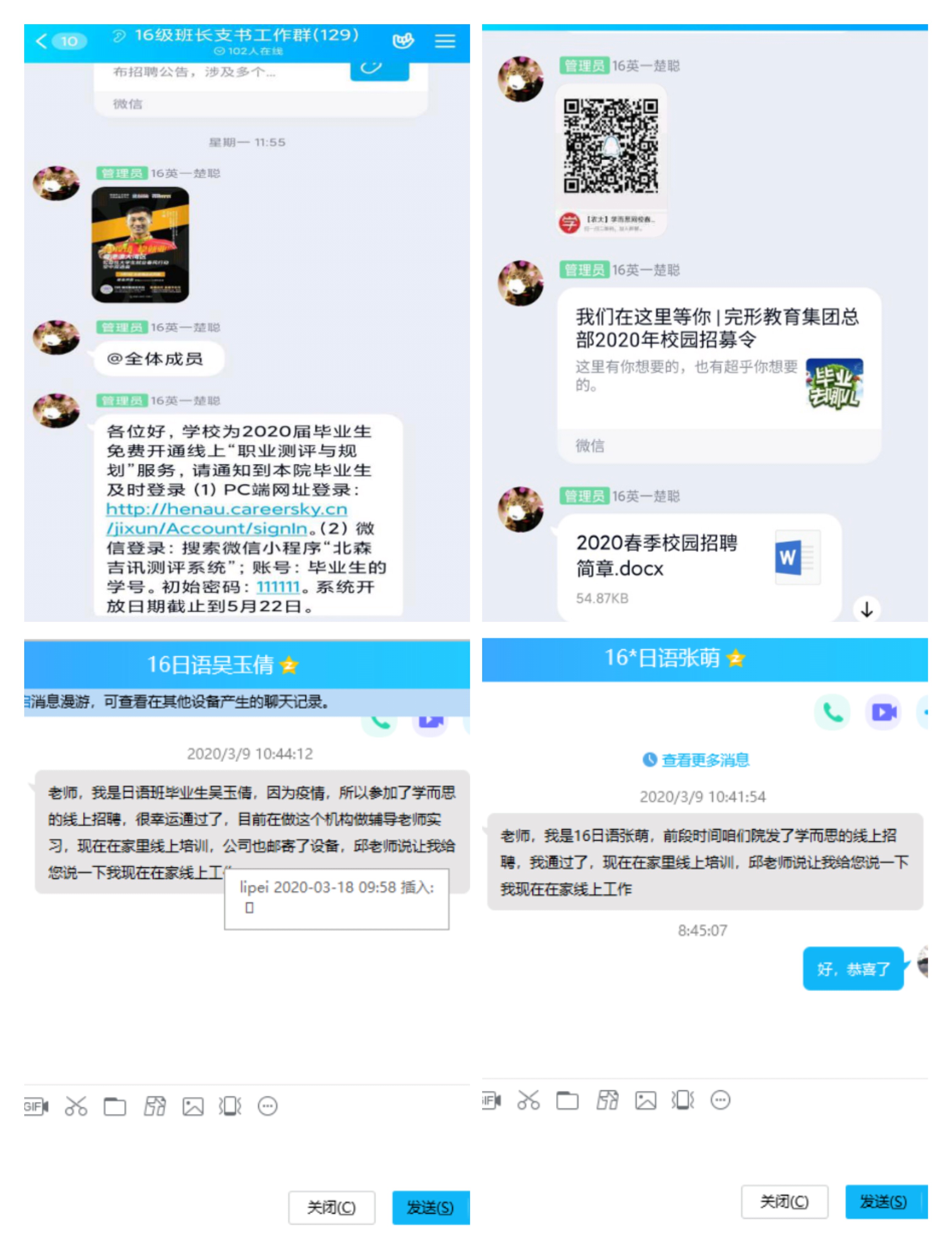 筹建了毕业生工作领导小组,由邓然老师、院学生会、推免生具体负责开展网上双选会等系列毕业生就业、服务、帮扶活动,为毕业生提供就业指导,拓宽就业渠道,减轻毕业生因疫情而产生的就业压力,帮助毕业生顺利就业。截止目前,院学生会通过网络邀请了30余家用人单位来永利皇宫app